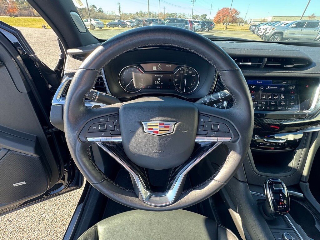 Stepping inside, you'll be greeted by a cabin that exudes sophistication and attention to detail. Genuine wood accents, leather-wrapped steering wheel, and a customizable digital instrument cluster create an environment that is both luxurious and intuitive. The Cadillac User Experience with embedded navigation and a 14-speaker Bose audio system ensure you'll enjoy every mile of your journey.