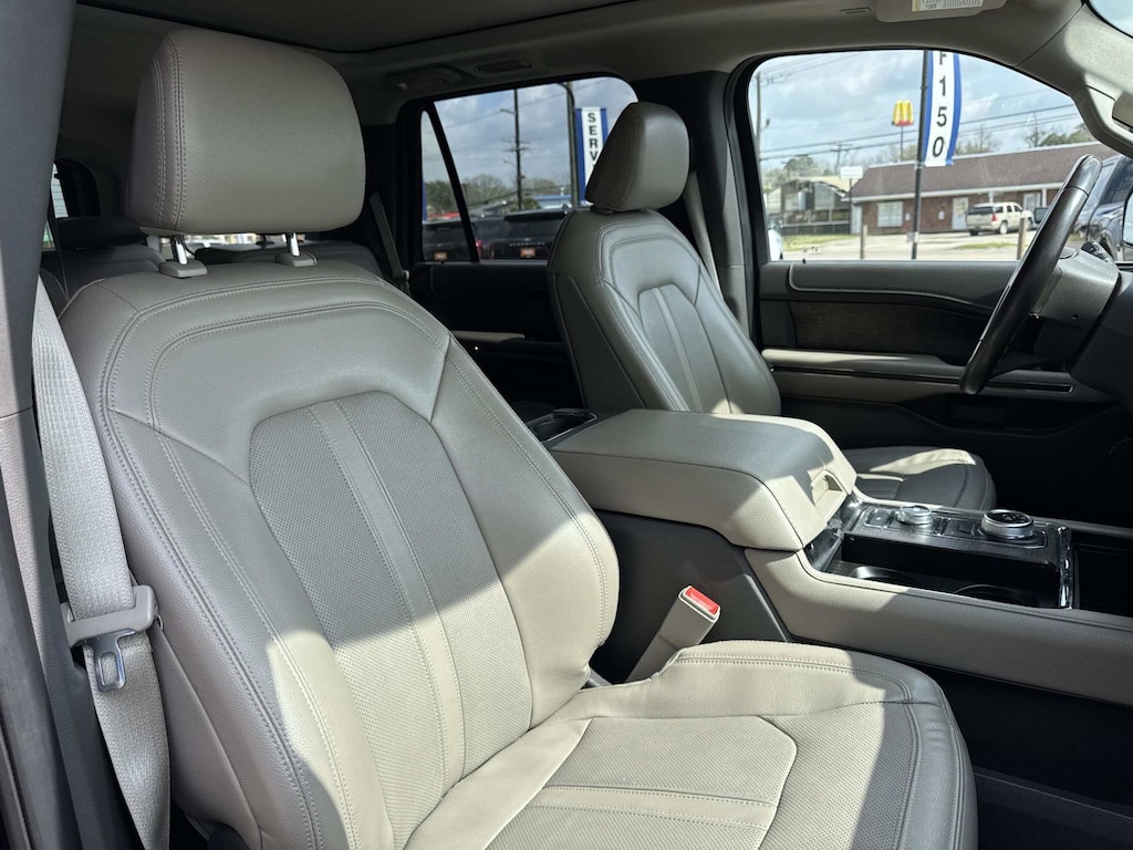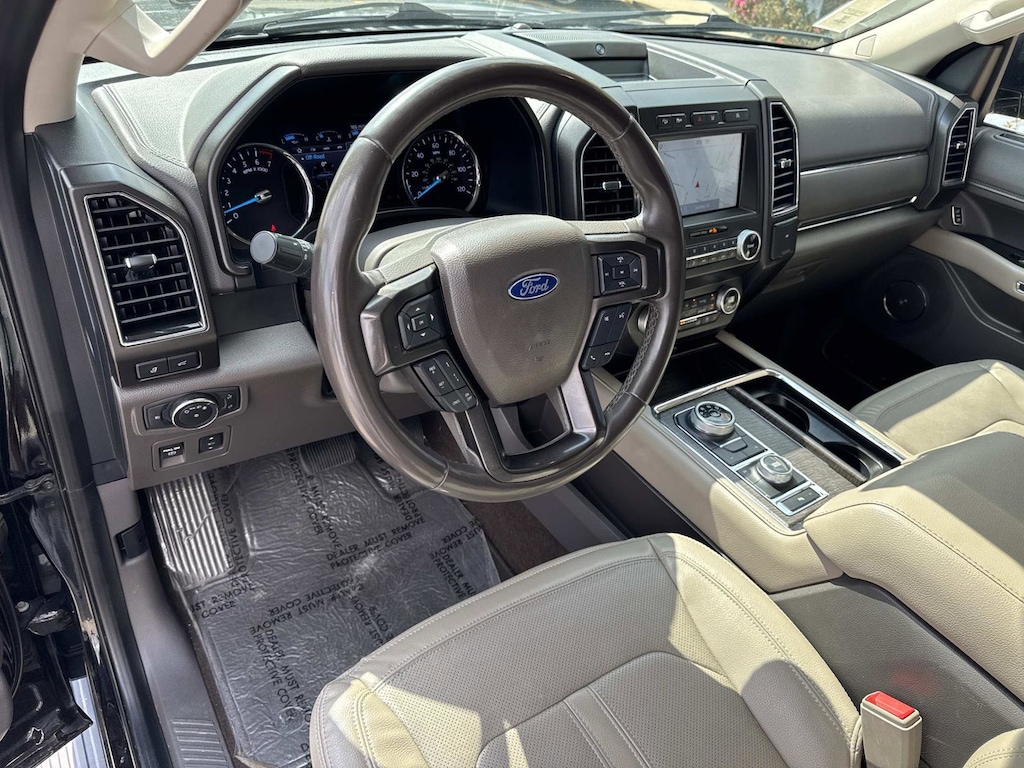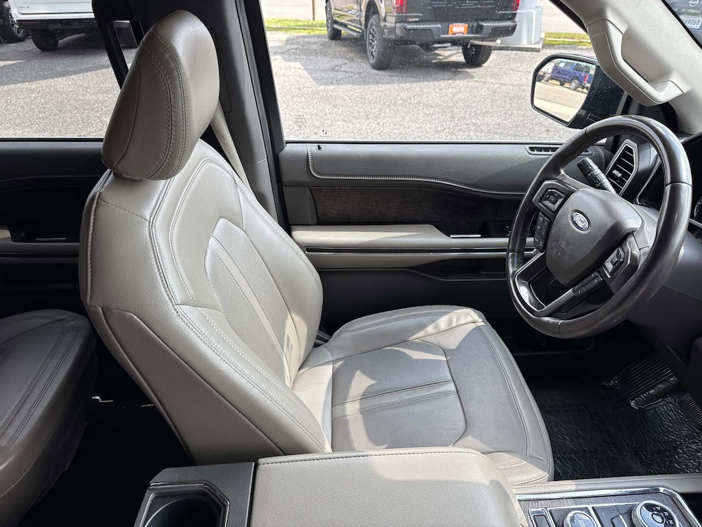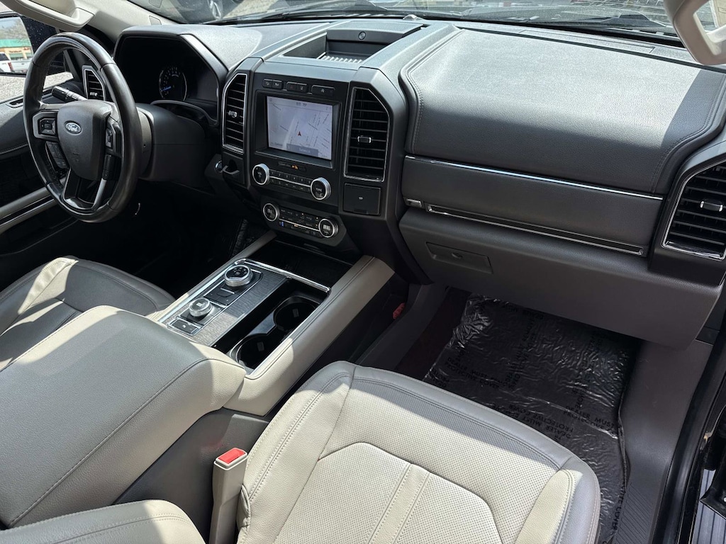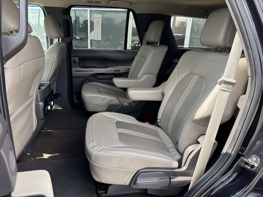 Black Metallic This Expedition Limited is nicely equipped with Equipment Group 300A Standard Package, 4WD, 12 Speakers, 2nd Row Leather-Trimmed Captain's Chairs w/Armrest, 3.31 Axle Ratio, 3rd row seats: split-bench, 4-Wheel Disc Brakes, ABS brakes, Adjustable pedals, Air Conditioning, Alloy wheels, AM/FM radio: SiriusXM, Auto High-beam Headlights, Auto-dimming door mirrors, Auto-dimming Rear-View mirror, Automatic temperature control, Brake assist, Bumpers: body-color, Compass, Delay-off headlights, Driver door bin, Driver vanity mirror, Dual front impact airbags, Dual front side impact airbags, Electronic Stability Control, Emergency communication system: SYNC 3 911 Assist, Exterior Parking Camera Rear, Four wheel independent suspension, Front anti-roll bar, Front Bucket Seats, Front Center Armrest, Front dual zone A/C, Front fog lights, Front License Plate Bracket, Front reading lights, Fully automatic headlights, Garage door transmitter, Heated & Ventilated Leather Front Captain's Chairs, Heated door mirrors, Heated front seats, Heated rear seats, Heated steering wheel, Illuminated entry, Leather steering wheel, Low tire pressure warning, Memory seat, Navigation System, Occupant sensing airbag, Outside temperature display, Overhead airbag, Overhead console, Panic alarm, Panoramic Vista Roof, Passenger door bin, Passenger vanity mirror, Pedal memory, Power door mirrors, Power driver seat, Power Liftgate, Power passenger seat, Power steering, Power windows, Radio data system, Radio: B&O Sound System by Bang & Olufsen, Rain sensing wipers, Rear air conditioning, Rear anti-roll bar, Rear audio controls, Rear reading lights, Rear window defroster, Rear window wiper, Reclining 3rd row seat, Remote keyless entry, Roof rack: rails only, Security system, SiriusXM Satellite Radio, Speed control, Speed-sensing steering, Speed-Sensitive Wipers, Split folding rear seat, Steering wheel memory, Steering wheel mounted audio controls, SYNC 3 Communications & Entertainment System, Tachometer, Telescoping steering wheel, Tilt steering wheel, Traction control, Trip computer, Turn signal indicator mirrors, Variably intermittent wipers, Ventilated front seats, Voltmeter, and Wheels: 20" Premium Dark Tarnish-Painted. 4WD.