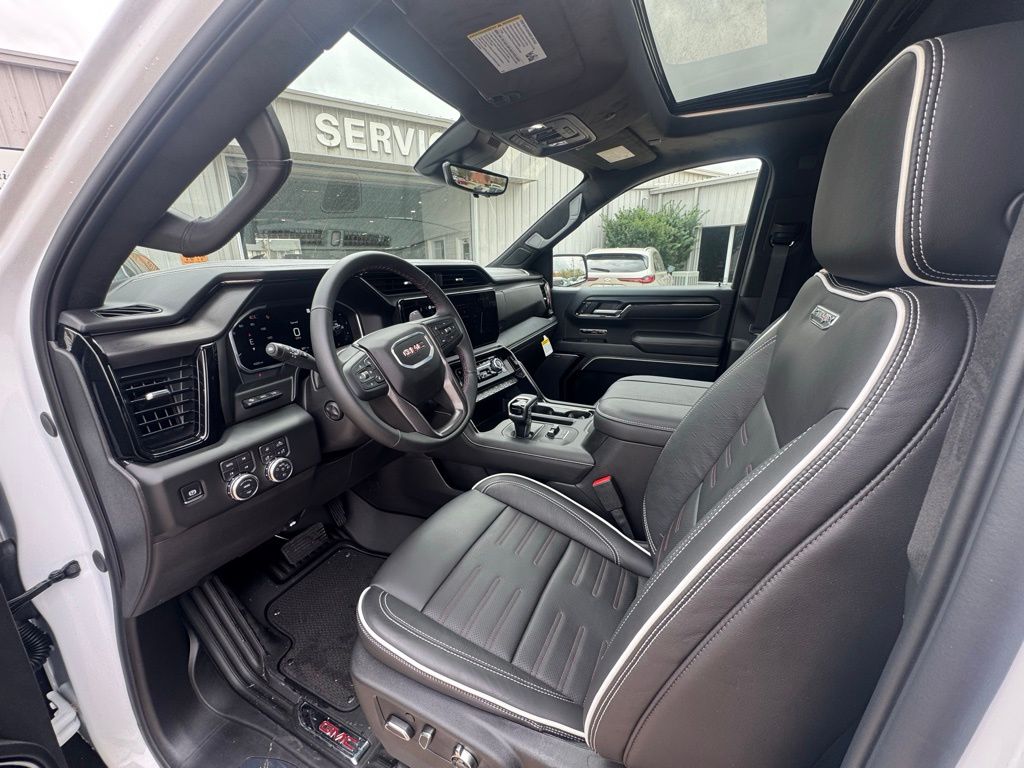 Summit White 2026 GMC Sierra 1500 AT4X 4WD 10-Speed Automatic EcoTec3 6.2L V8 10-Speed Automatic, 4WD, Obsidian Rush Leather.