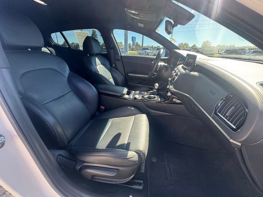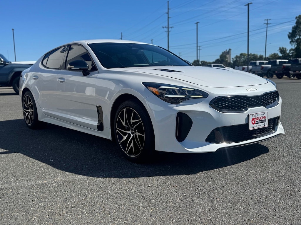 Prepare to be captivated by the exceptional 2023 Kia Stinger GT-Line, a sports sedan that effortlessly blends dynamic driving prowess with refined luxury. This stunning White Stinger, adorned in the elegant Snow White Pearl exterior, is a true head-turner that will ignite your passion for the open road.