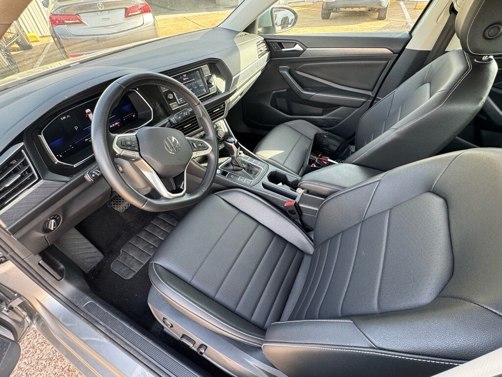 Pyrite Silver Metallic 2024 Volkswagen Jetta 1.5T SE FWD 8-Speed Automatic with Tiptronic 1.5L I-4 DI DOHC Turbocharged Titan Black w/V-Tex Leatherette Seat Trim.